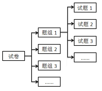 试卷中的题目是由题组来管理的,其结构关系为“试卷->题组->试题”,试题是存放在题组中的,题组可以看作是试卷中的一个基本容器,同一题组中可以添加不同的类型的题目,如下图: